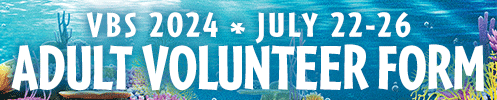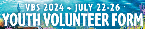 - CLEAN–UP CREW: Help clean up at the end of VBS on Friday July 26 from 12:00pm - 2:00pm.
